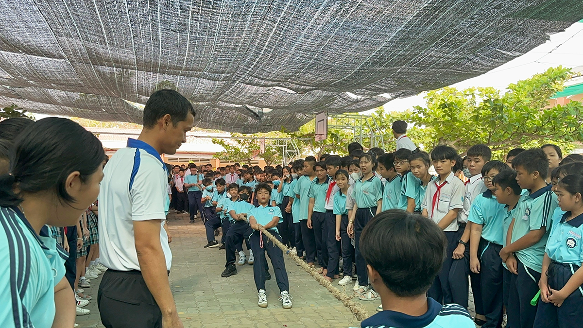 Cao Huy Bằng trao giải cho các lớp đạt giải Nhì môn Kéo co nam và môn Bóng đá nữ
