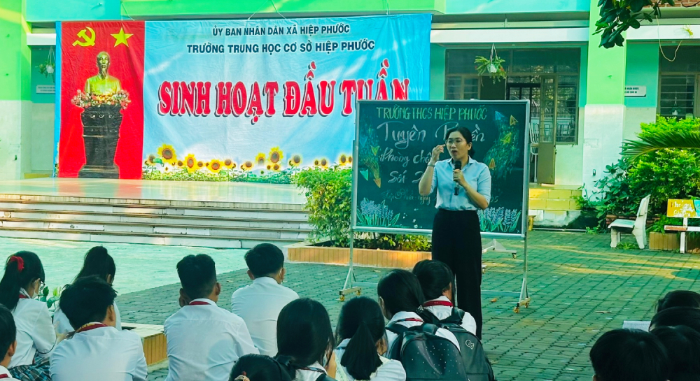 Buổi tuyên truyền diễn ra sôi nổi, thu hút sự tham gia tích cực của học sinh thông qua các phần giao lưu, đặt câu hỏi và chia sẻ ý kiến.