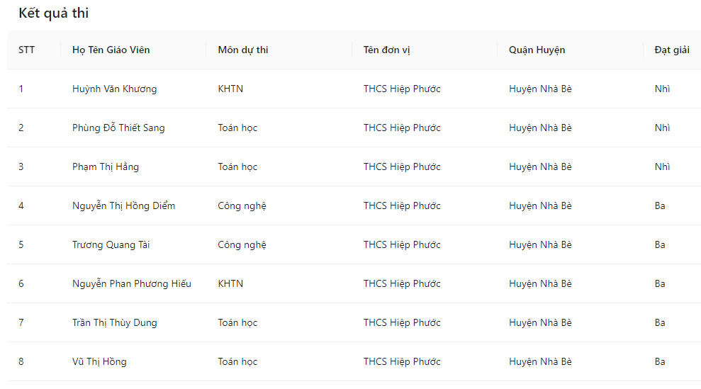 Danh sách thầy/cô giáo có sản phẩm đạt giải:
