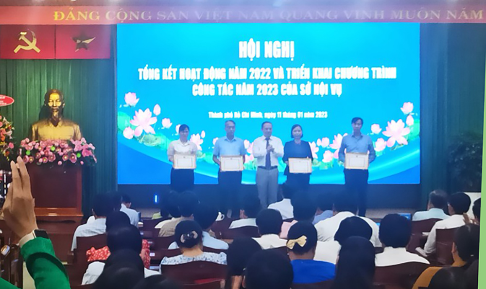 Thầy Cao Huy Bằng - Phó Hiệu trưởng Trường THCS Hiệp Phước đại diện tập thể nhà trường (bìa phải) vinh dự nhận giải Nhì tập thể trong “Hội nghị Tổng kết hoạt động năm 2022 và triển khai chương trình công tác năm 2023” do Sở Nội vụ TP.HCM tổ chức ngày 11//01/2023 tại Hội trường UBND TP.HCM