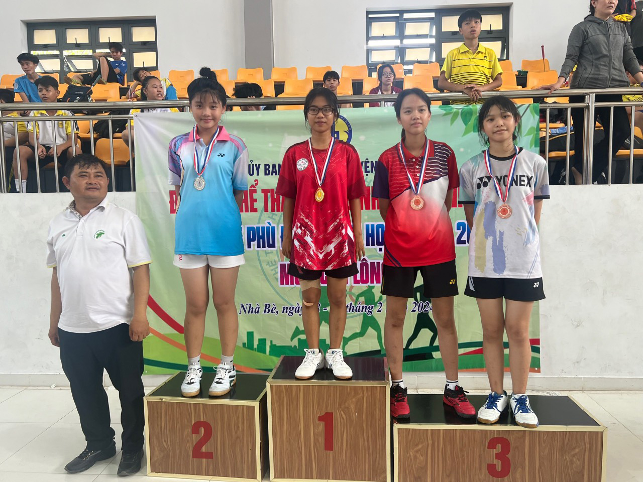 khối 8,9; Em Bùi Ngọc Kim Phúc (lớp 9a1) đạt 01 HCB nội dung đơn nữ khối 8,9;